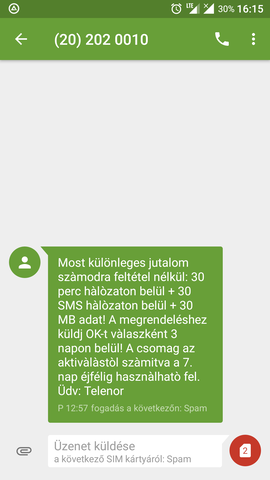 Kaptam hetente egy SMS-t, hogy ennyi meg annyi pénzért aktiváljam 7 napra ezt a szolgáltatást, de nem érdekel a dolog, a végén már ingyen adták volna, ez vicces volt számomra, ezét osztottam meg a képet.