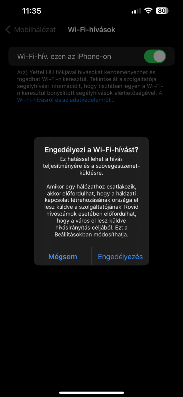 Ios 17-ben már van a yettelnél wifihívás bekapcsolás opció. Érdemes bekapcsolni, hátha egyszer csak lesz, vagy okoz vmi zavart az erőben még?