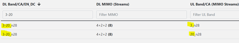 Végre megoldottam melyik sávokra csatlakozzon a Router pl 20+3+1. Letiltottam a B8, B28-at.