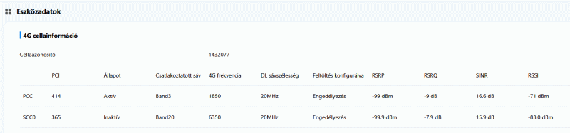 Most ZTE G5B Router van.Másfél évig naponta állítgattam a B20-at elsődlegesre minden éjjel, akkor még hagyta pár órát a rendszer, de nappal azonnal visszacserélte a sorrendet és B3 lett az elsődleges. Hiába mentek CA-ban a B3+B20 (és egy ideig +B1 is) a feltöltésnél csak az elsődlegest használta, ami 0-5 Mbit/s volt.