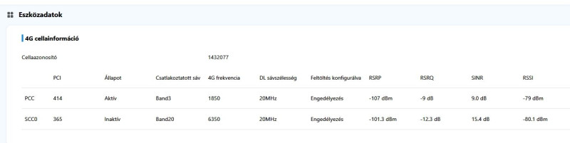 Más is tapasztalt már olyat, hogy egész évben jó idő, rossz idő, eső, szél, tavasz, nyár, ősz, éjjel-nappal pl a B3 jelerőssége (RSRP) gyenge -102 -104 dBm, ezért hónapok óta nem is használtam inkább.