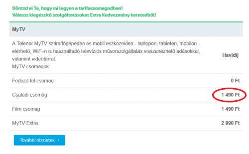 Hipernet Home M csomaghoz próbáltam rendelni az Extra Kedvezmény keretem terhére a hozzá meghirdetett MyTV Családi csomagot 1490.- ért. Persze nem sikerült. Telefonos ügyfélszolgálatnak sem sikerült. Megnyugtattak, hogy valószínűleg elírás történt, mert 3490.- ért lehet csak megrendelni.