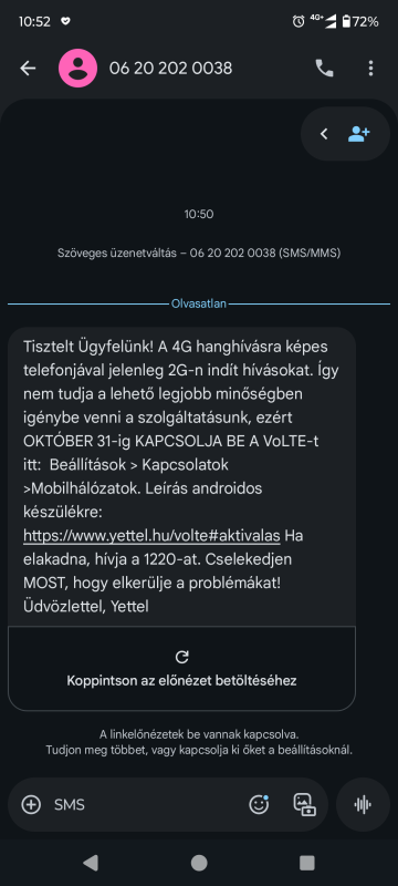 Szeptember óta a céges flotta(korlátlan perc/korlátlan net) Yetteles lett. Egyre sűrűbben fordúl elő, hogy van net (4G) mellette felkiáltó jel van, és nem tölt be semmi se, nem jönnek üzenetek, ez a helyzet random helyeken és random időben fordúl elő, ami random ideig szokott tartani. Találkozott már valaki hasonló esettel?