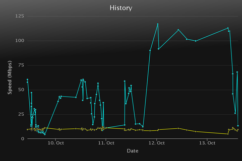 Az 50 Mbps felém is a plafon lett szombat óta. Előtte többször is volt 90-100 Mbps.
