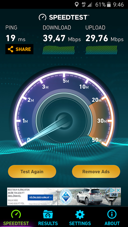 Ha az enyémre gondolsz az már egy jó érték. Korábbi mérésekben volt 28 is a letöltés. Mondjuk úgy is csak tesztelgetek, mert amúgy a UPC-s számom használom. Este vissza is teszem azt.