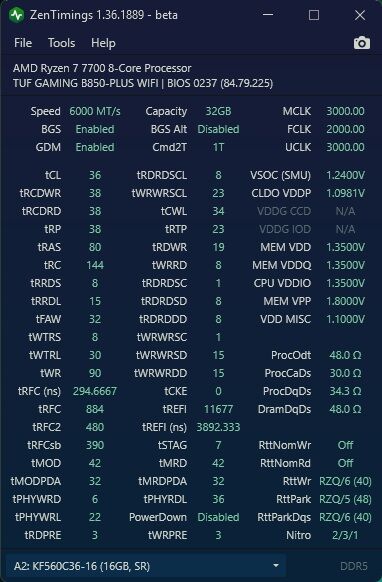 Nekem az alábbi konfigban nem megy a KF560C30BBEK2-32 2x16GB RAM, csak JEDEC 4800-on, pedig van EXPO #0 6000 profilja is.Tudna valaki segíteni, mi lehet a gond?