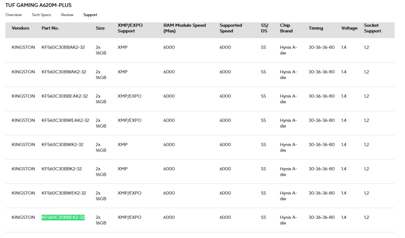 Én annyit látok - amit egyszer sem láttam megemlítve az ajánlásoknál mint esetleges korlát, és én sem tudtam ezt az adatot, addig míg bele nem futottam a helyzetbe és rá nem kerestem mindenre is még egyszer - , hogy a Ryzen 8700F (és sok másik modell is) 5200 MHz-ig támogatja a DDR5 memóriákat, legalábbis a gyártói oldalon ez van feltüntetve. Én eddig azt látom, hogy ez lehet az oka, hiába tudna az alaplap jóval többet is (és szerepel is a támogatott RAM-ok között ez a 6000-es is), mint 6000Mhz, viszont nem vagyok benne biztos, azért kérdezek, hát ha csak kell még valami beállítás.
