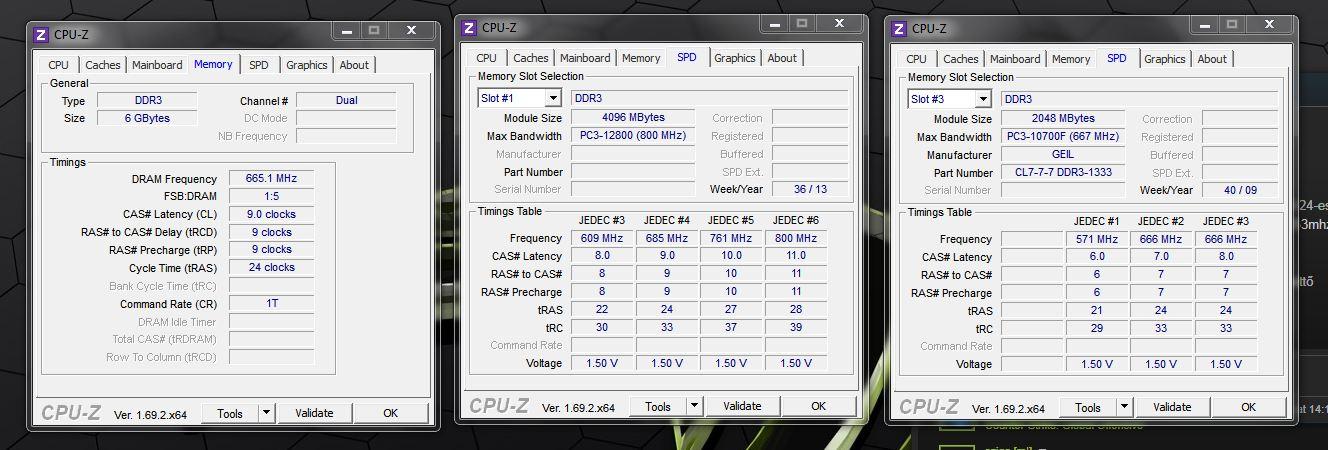 Adott egy 4GB CSX DDR3 1600Mhz-es ram, meg egy 2GB GEIL DDR3 1333Mhz-es ram különböző időzítésekkel.