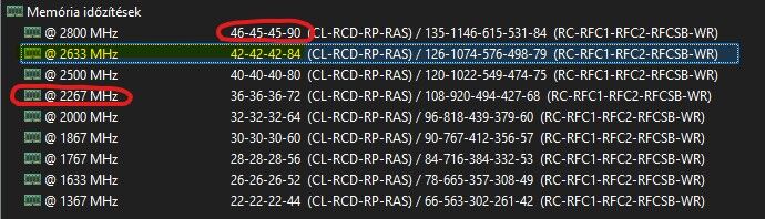 Ami érdekes, hogy korábban a pirossal jelölt értékeket vette alapul a gép, lassú órajel és a legrosszabb időzítés, ez a 2633mhz és 42-42-42 4 modullal szerintem vállalható marad.