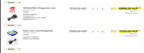 Szóval ennél a 2.0dci lagunánál van egy szinte nagyon apró remegés alapjáraton, viszonítani nem tudok máshoz, de szerintem nem kellene lennie, szóval kb pont annyi, mintha nagyon lájtosan masszírozna az ülés. A felső kutyacsont az repedt(tes). Akkor gondolom a többi is hasonló lehet, de ezeket még ki kell derítenem. Nem tudom, hogyha kicseréltem a lenti alkatrészeket, javul-e a helyzet, vagy mennyire érezhető másnál, mert tényleg nem tudok viszonyítani semmihez, mint írtam, szinte szóra sem érdemes kis vibráció?Autodoc árak. Van még egy zselés motortartó, aminek a kódszáma 112105736R, de azt itt nem találtam meg. Az kb plusz 30 ezer még, de első körben ezeket cseréltetném.