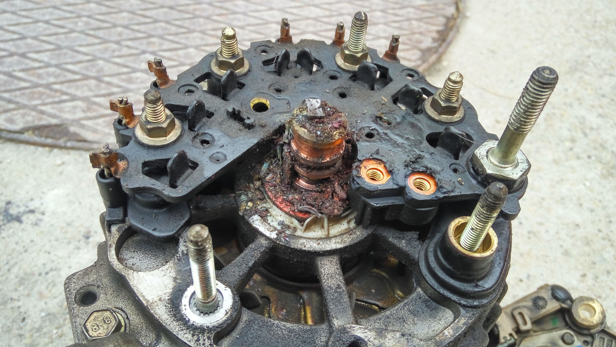 A mai napban leszereltem róla a generátort. Nem kicsi munka volt, első jobb kereket kellett leszedni, aztán lengéscsillapítót leengedni, és úgy rá szétfeszíteni, hogy kiférjen benne a generátor. Szét is szedtem és ezt fogadott: