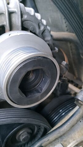 A közepe mikor meg van szorítva akkor tartani kell a kulccsal, utána lehet kézzel forgatni a külső felét amin a szíj is fut, az egyik irányba el kell tudni forognia, a másikba nem.