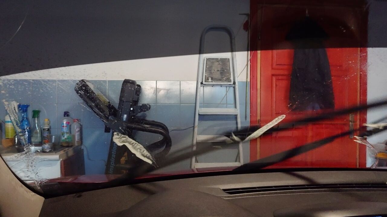Indulás előtt persze löttyintek rá vizet, de a többi/volt autónknál is hasonló (Picasso, C3, 208; a C8 hasonló volt mint a Magic Wash) és ott elég jól vizezte széltében, ez nem annyira szépen terít, de sokkal jobban mint a gyári - videón nem olyan jól látszik külön külön, ezért csináltam a gifet. Nyilván a visszacsapó is javít még valamennyit. Ki is megyek kipróbálom...