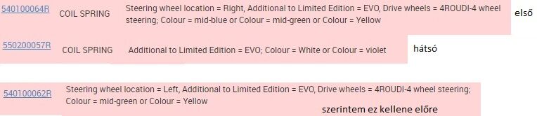 Nagyon extrém dolgot mondok, ha tényleg lehetetlen beszerezni a rendes rugót - mivel van minta, azt be lehet mérni, és az alapján szerintem tudnak segíteni pl Vörös autórugó műhelyében. De ha találnál ilyen konfigurációban bontást (motor, kasztni, 4control), aminek pl pont azonos a rugó színkódja is, szerintem az lenne árban a legjobb megoldás