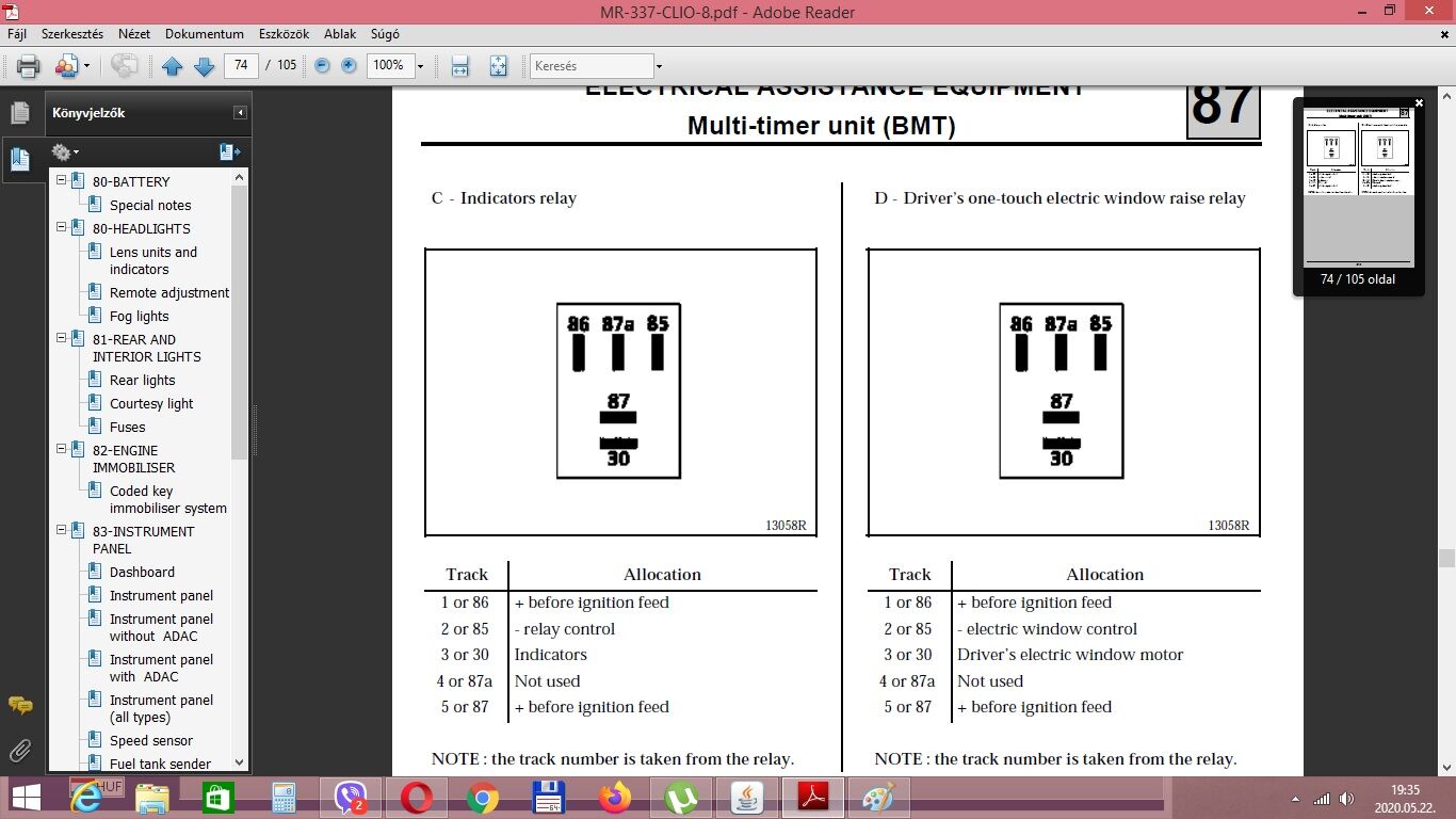 Üdv! Segítséget szeretnék kérni. A Clio 2-es (1.2 16v) autóm két hétig bírja kb., utána lemerült aksi miatt nem indul. Kimérve egy nagyon minimális ,állandó fogyasztás van az autón, 0,03-0,04 kb. Annyit sikerült kideríteni, hogy az UCH első reléje van állandóan áram alatt, ha az UCH bisztijét kiszedem, megszűnik a fogyasztás. Van amit sikerült kiderítenem a relék közül, van amit nem és pont a hibát mutatót nem tudtam kinyomozni mihez tartozik. Esetleg a relékhez egy pontos infot illetve a 40-lábashoz egy kötési rajzot tudna valaki becsatolni? Előre is köszi!