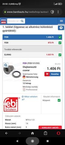 Van valakinek eladó olajleeresztő csavarja ? SOS-be