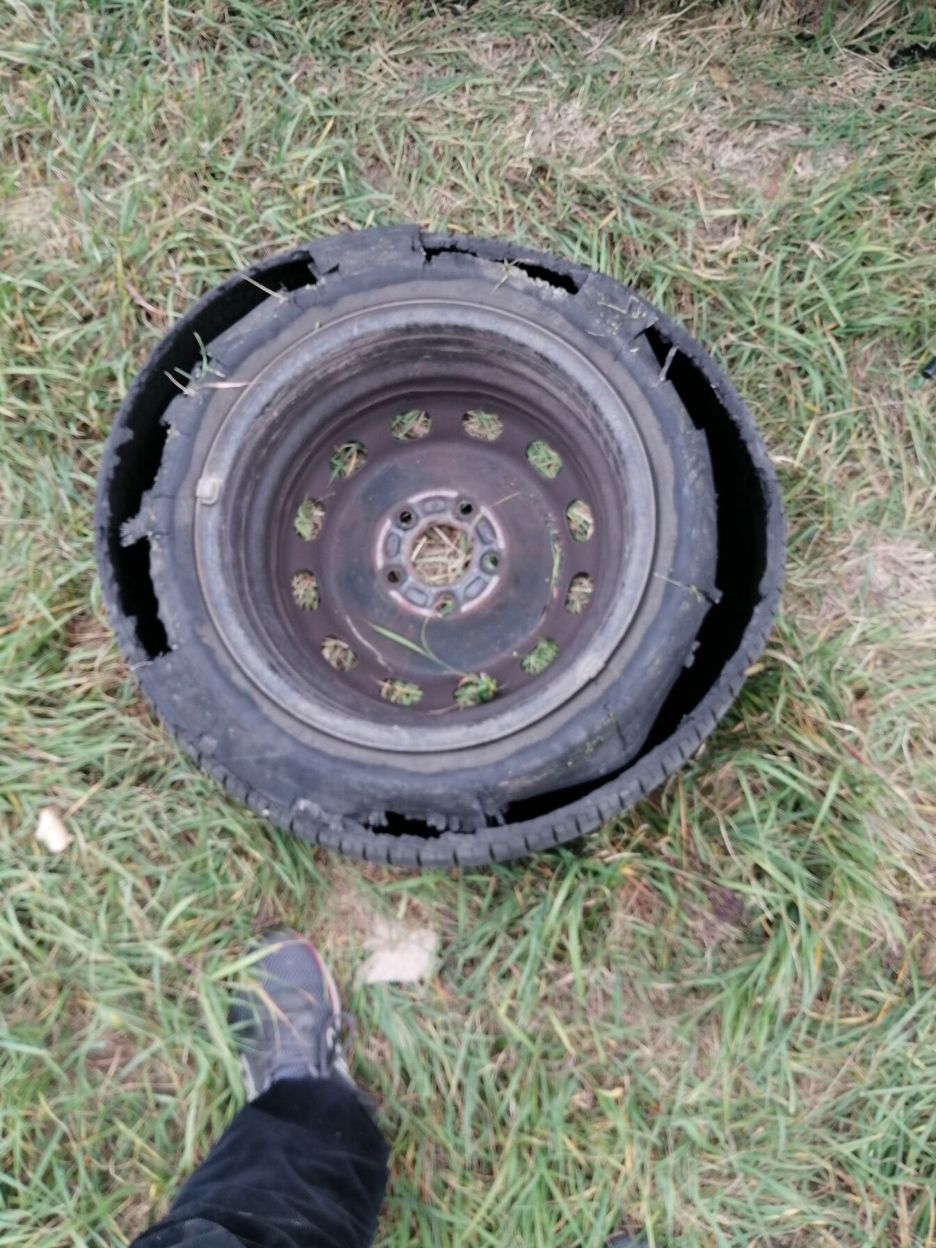 De amilyen szar utak vannak és néha volt a hátul kocsiban nehéz cucc. A letaposott gumin már nem volt egyértelmű nyom, 200-300 m volt amire kievickéltem a leállósávba.