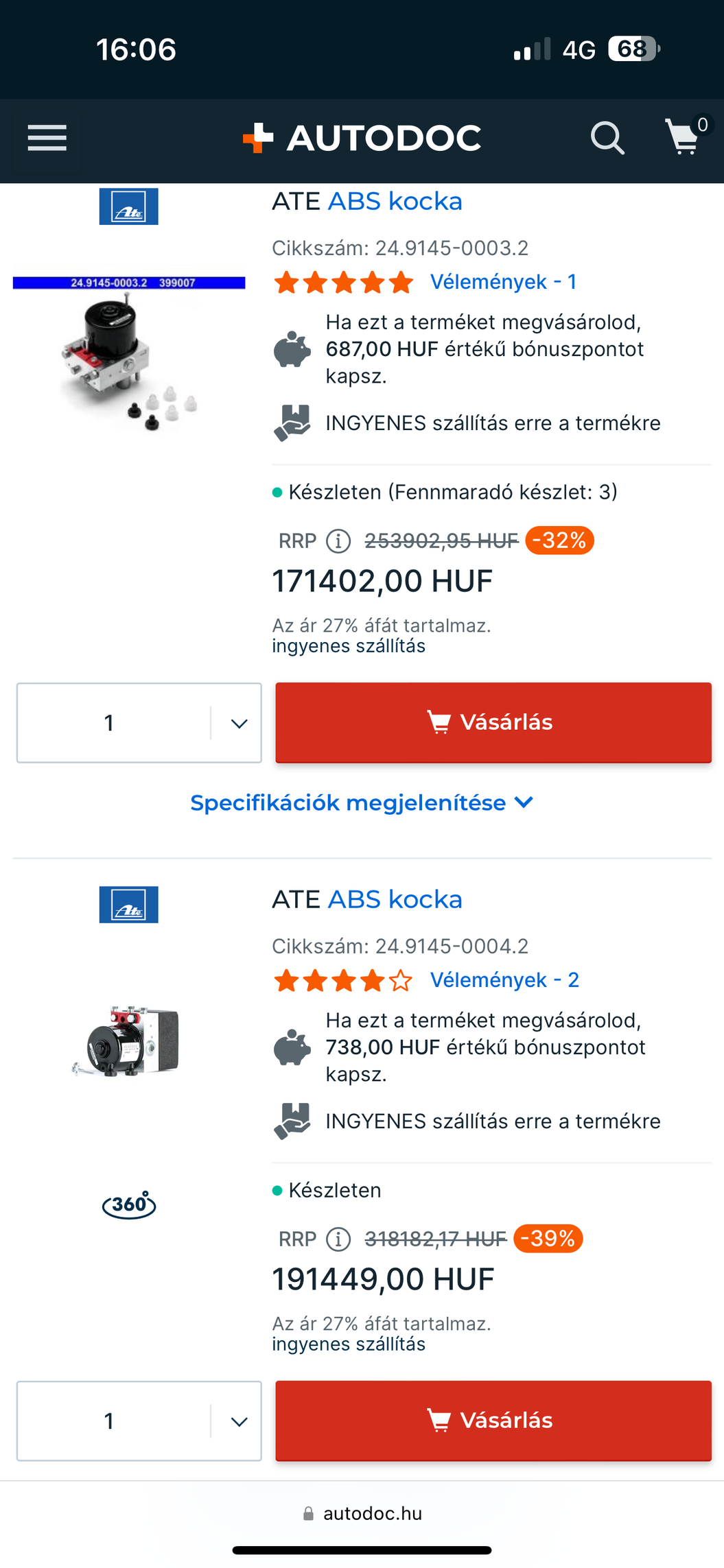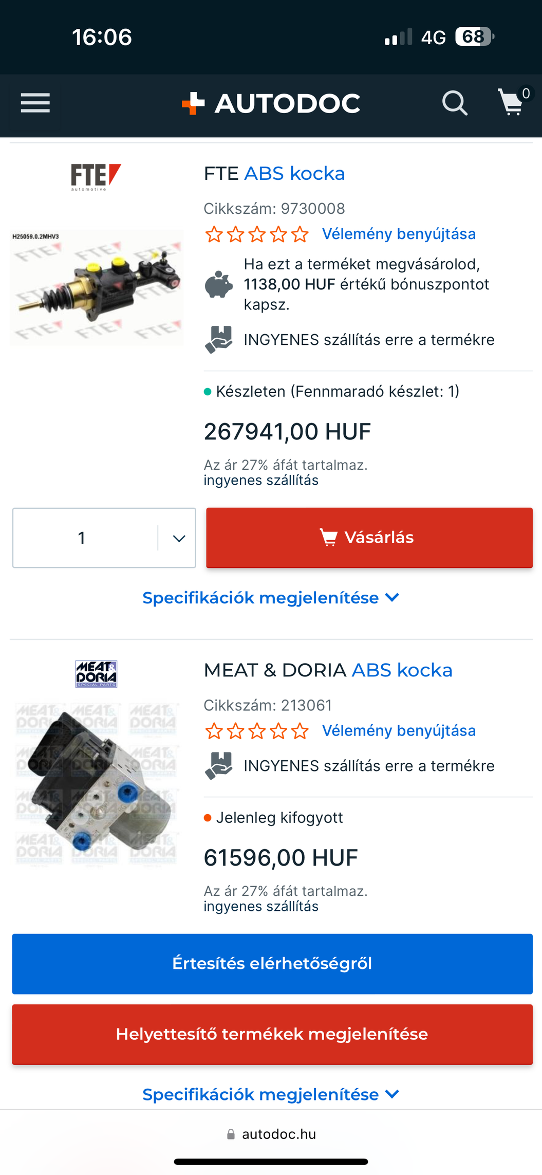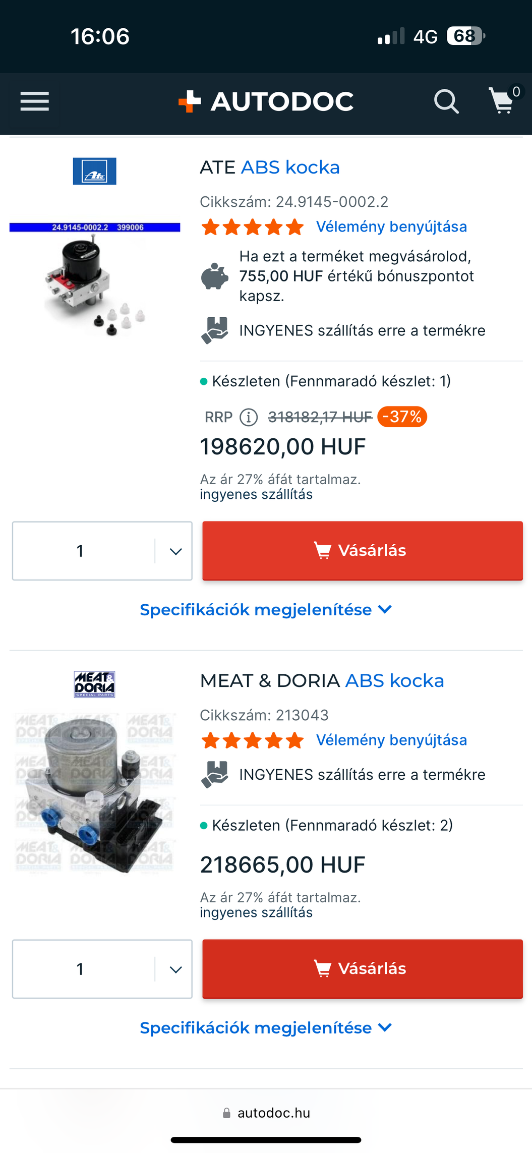 Nekem is ugyanezt írja mint a kollégának és semmiféle befolyásoló tényező nem jelentkezik vezetésnél. Nálam is pirosan világít. Egyenlőre még nem találtam hajlandó szerelőt arra, amit a múltkor beszéltünk, hogy ne egyből az ABS kocka cserével kezdjük. Mondjuk nálam sokat állt az autó és igazából az után jelent meg a hiba. Garázsban állt. Ott meg nincs nyest.