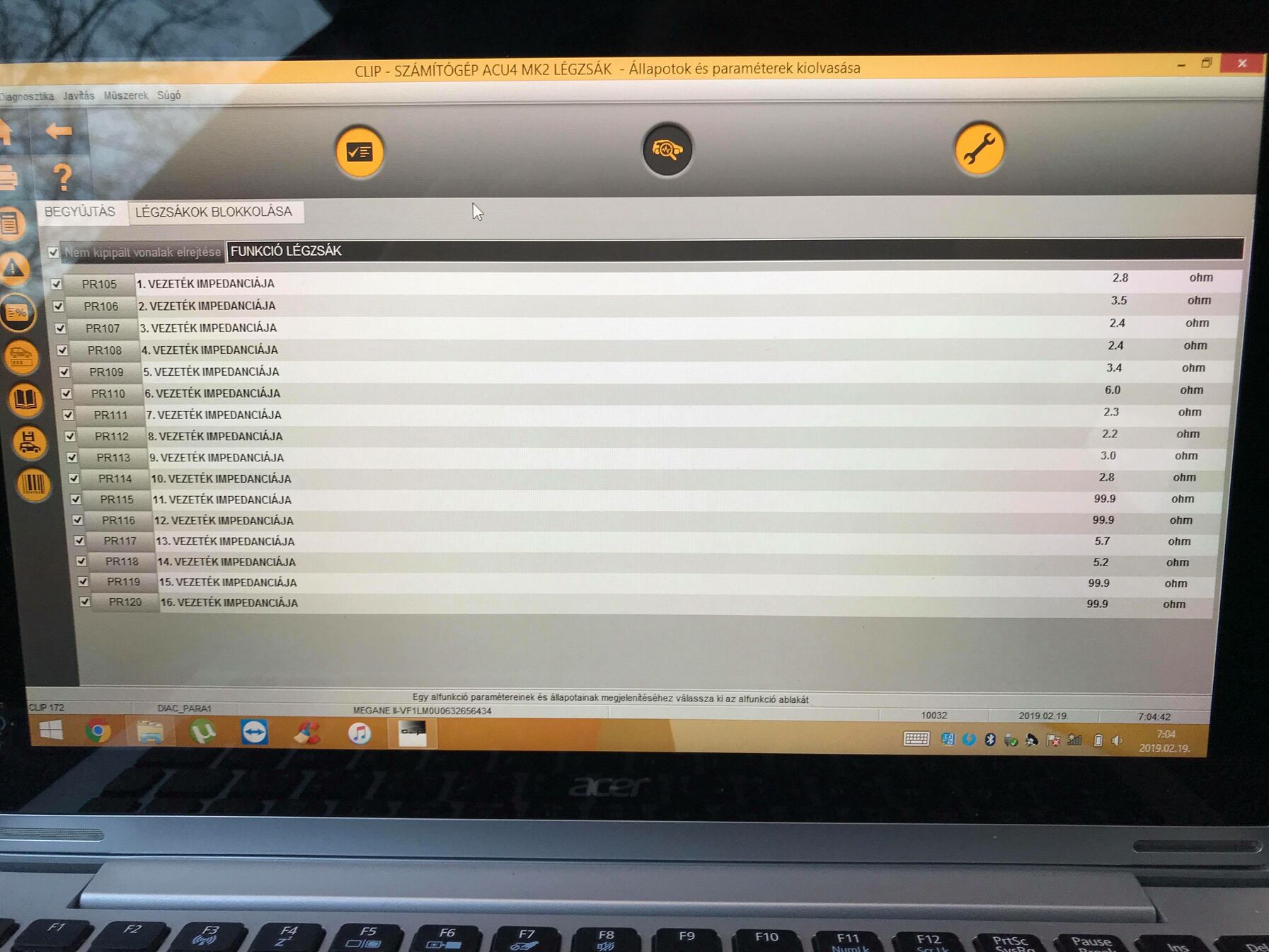 Ma reggel már felkészülten mentem le az autóhoz, töröltem a légzsák hibát, és egész reggel élőadatokat figyelve jöttem be dolgozni. Az 5. és 6. a kormánylégzsák. Az egyik érték kilép a határértékekből néha 1-2 tizeddel. Gyanítom itt lesz a kutya elásva....