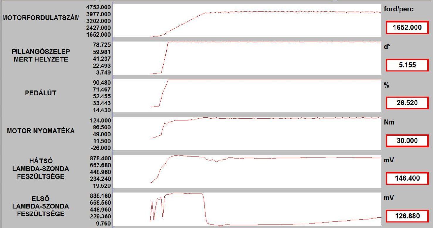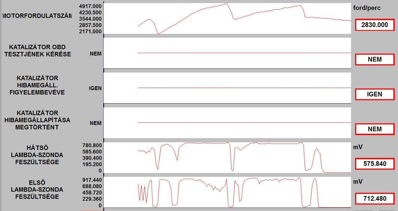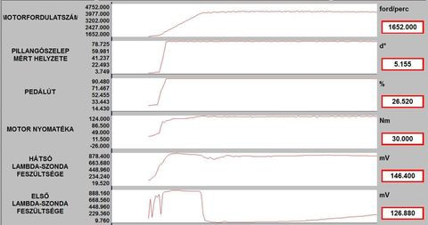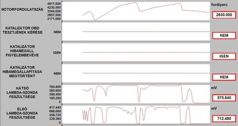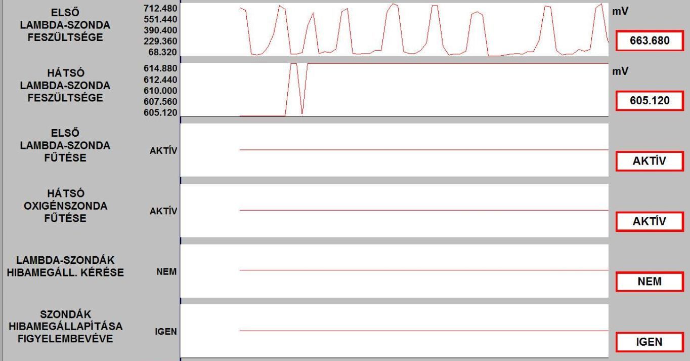 A vege fele alulrol kattogo hang nemi budossel es az elso lambda szonda feszultseg erteke elkezdett ingadozni.