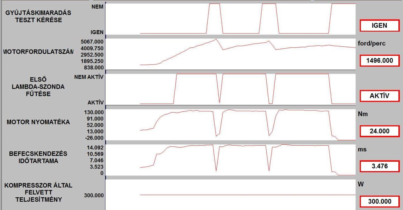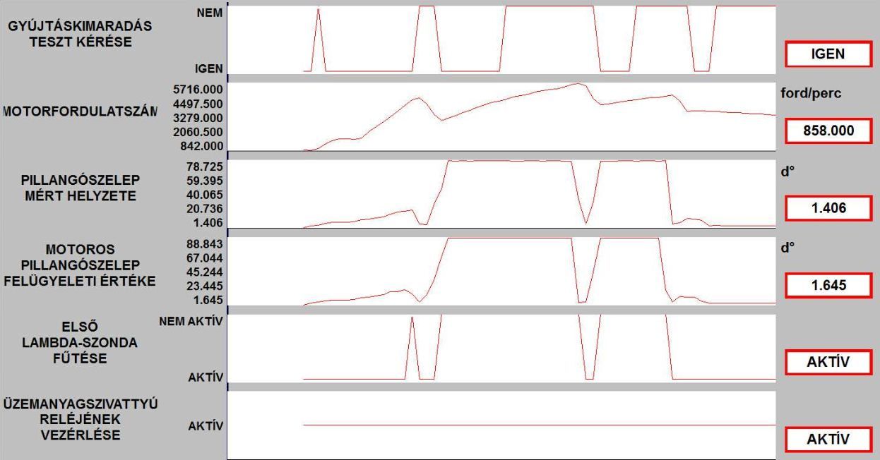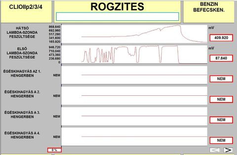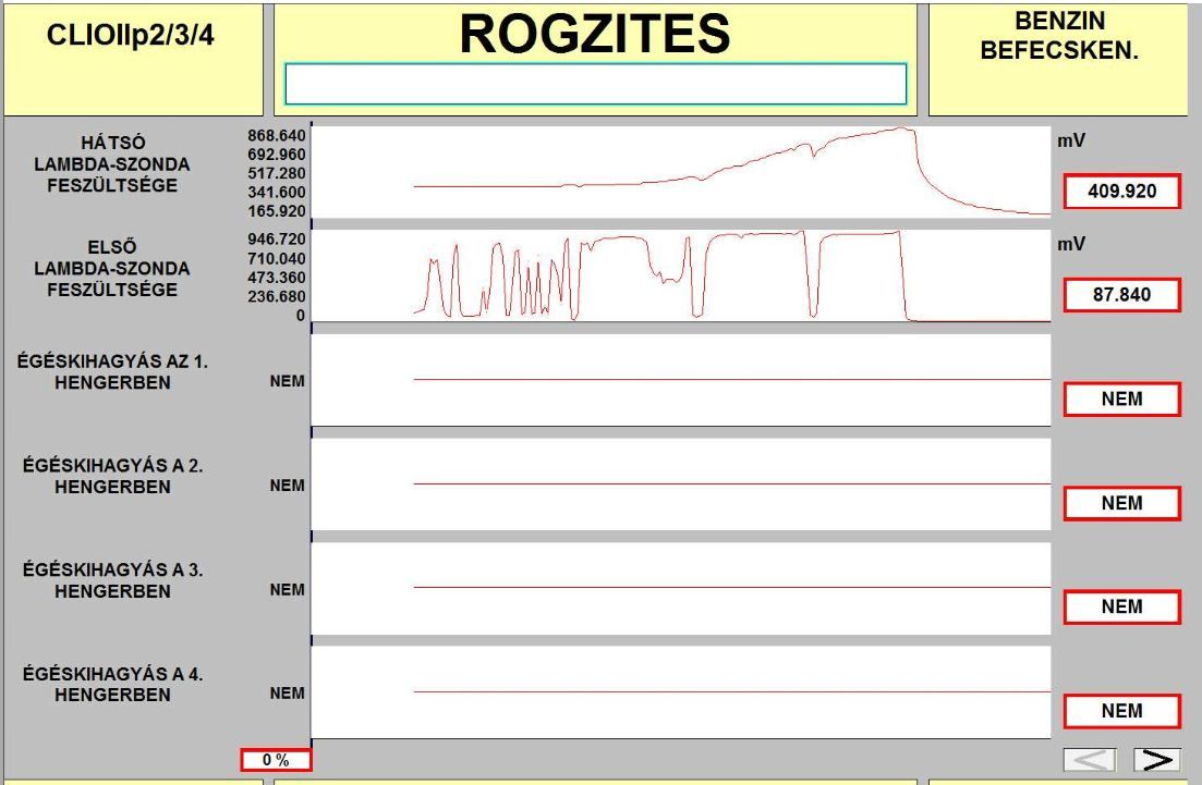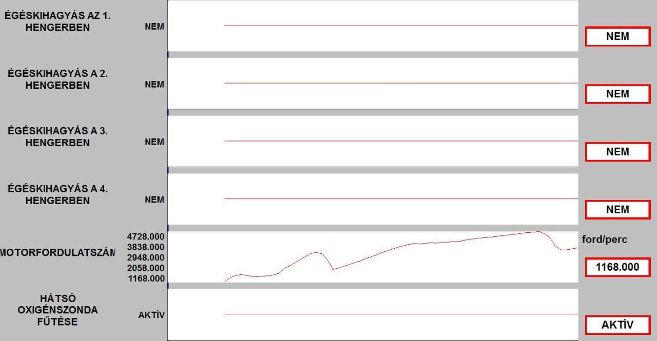 A vege fele alulrol kattogo hang nemi budossel es az elso lambda szonda feszultseg erteke elkezdett ingadozni.