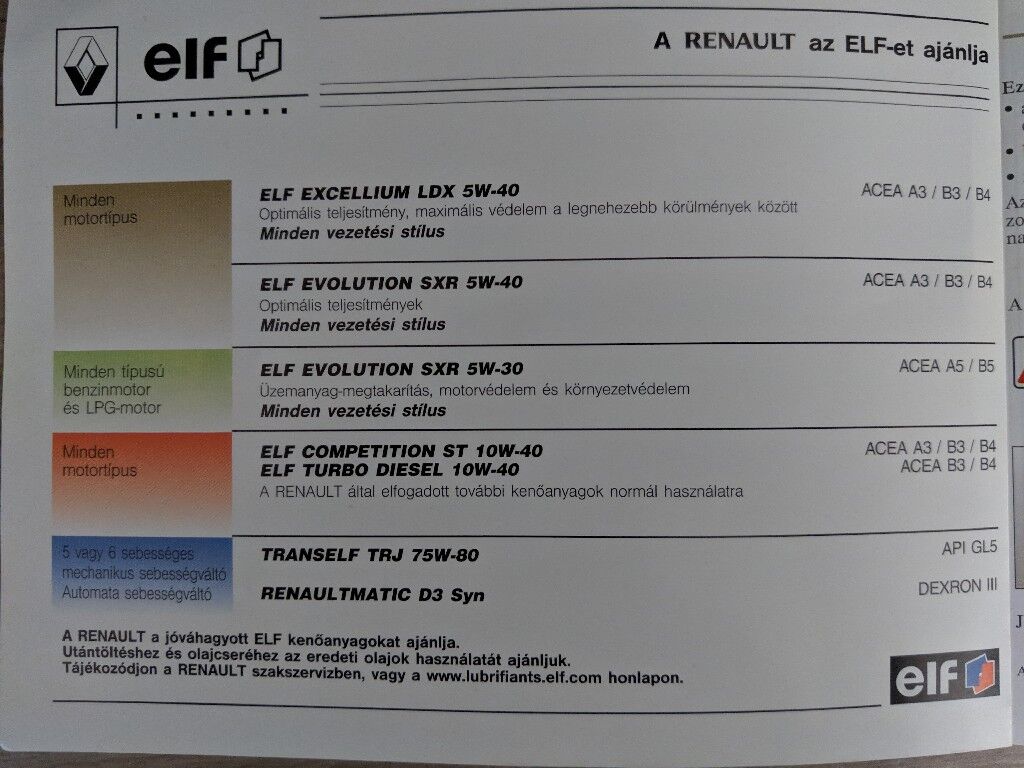 Szia hogy érted hogy miért nem rakok bele normális olajat? Ez az olaj amit linkeltem nem az? Azt hittem normális minőség,de elvileg az elf oldalán nem is találok jobbat(vagy csak én nem tskáltam 😀)És a gyári könyvében is ez van. Milyen típust érdemes akkor bele rakni? Teljesen meg vagyok keveredve,azt hittem h a legjobb olaj amit kaphat. Amit linkeltem annak is meg van az RN0700 minősítése.