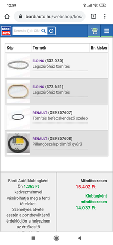 Az injektor tömítés méretét meg tudnátok mondani? Mert sajnos errefelé mintából nem tudják megmondani