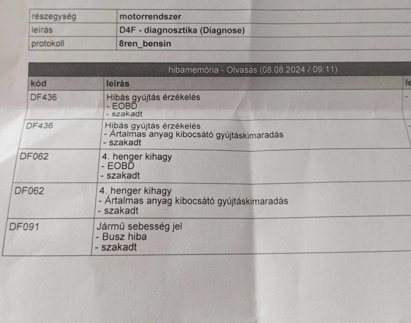 Biztos ez lenne a hiba? Csak költői kérdés: a szerelő, akihez elvittem miért nem nézte megy a gyertyát vagy mérte be pl. a gyújtótrafót? Mellékelem a képet, ezeket a hibákat dobta. Ma pl. hazafelé nem volt semmi vele. Szóval akkor ne induljak neki gyújtó trafó és vezeték cserével? Vagy vigyem szerelőhöz újra?