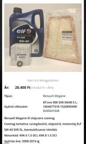 Az autó 2009 Renault Megane grandtour 1.5 dci, viszont k9k7 motorkódú. Esetleg másik szett után kell néznem?Még egy kérdés, a váltó olajról nem találtam semmit, tudnátok ebben segíteni?