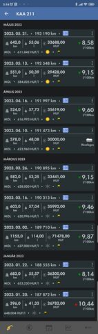 Alapvetően napi 260km munkába járással (Győr - Bécs) 120-al a nagy átlag ez volt: