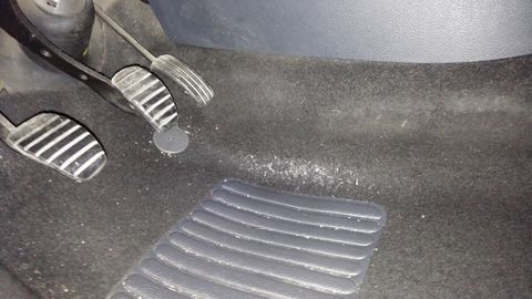 Egyébként fogyogatott a hűtővíz. A padló kárpit folyamatosan nedves volt. Ma hoztam el az autót, még mindig nedves. Eddig is az volt, a vezetőoldalon, a gázpedál mellett, jobbra, a váltó felé. Lehet ott mástól is ilyen olajos-nedves?
