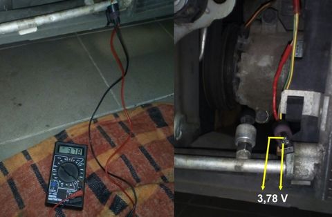 Itthon rámértem a mellékelt fotó alapján /3.78V/ ÉS EKKOR kattant is szépen a kompresszornál, emelte a fordulatot is, indult a ventillátor, de csak meleget fújt kb. 5 perc után is ...