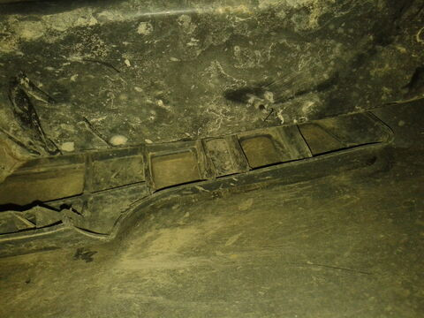 csomagtartó bal odala 1 csavar , sérülés nem látszik . A műanyag idomon túl , kb 2 óra 30 perc körűl