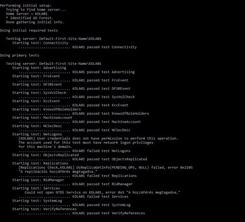 Ha a szerver oldalon nem megy az AD, akkor a Directory Services log van telefosva hibával.