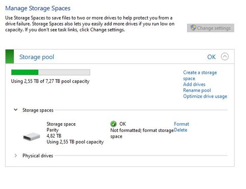 Tegnap még boldogan éltem a 4 lemezes Storage-spaces ben felvett parity tömbömmel, rajta egy NTFS volume-mal, rajta a fél életemmel.Mára pedig ÚGY hogy az összes lemez jelen van, és úgy hogy egészségesnek mondja a tömböt, csak a formázatlan területet látja bármiféle partíció nélkül.