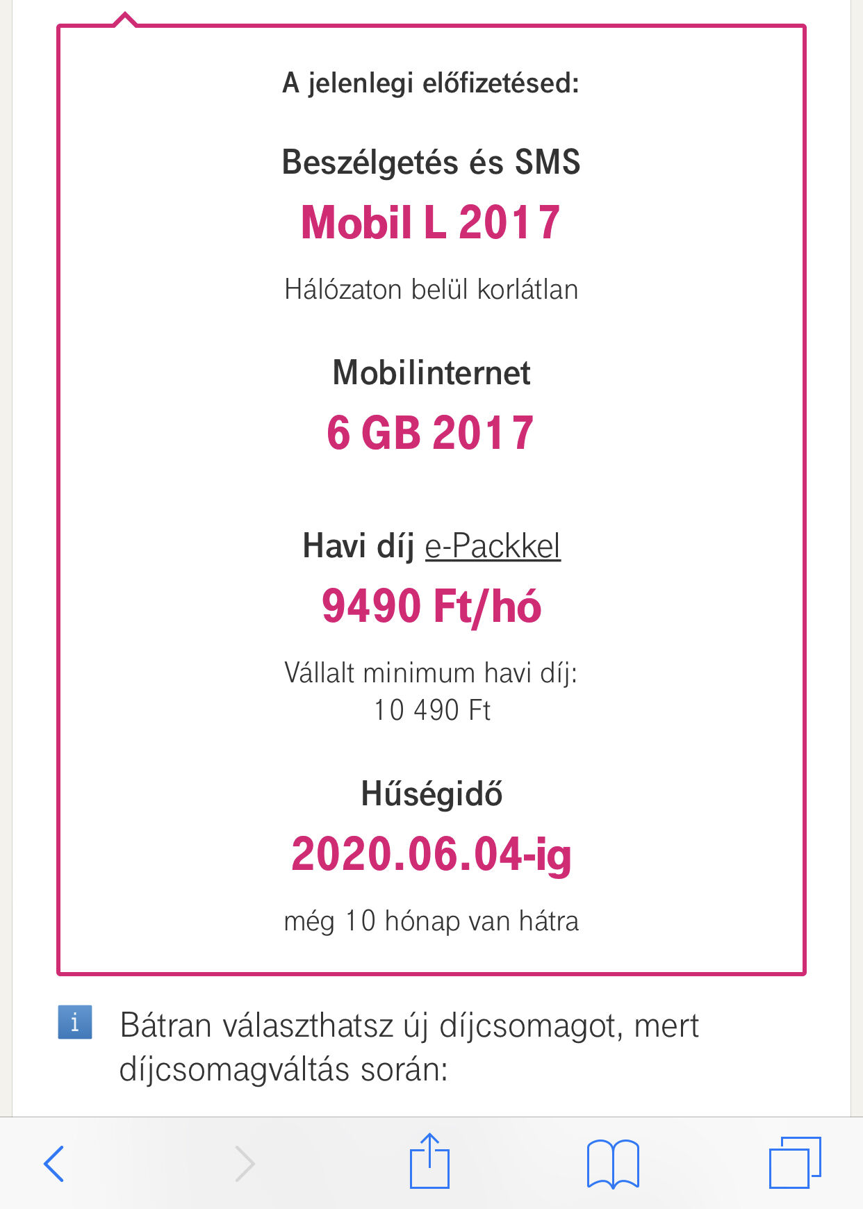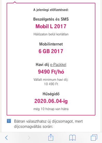 Na felhívtam a Telekomot. Átgondoltam hogy akkor melyik csomagra váltanék, DE mint kiderült nem válthatok! Amit nemrég linkeltem képet itt, az alapján 50Ft-al túllépem a költési szintet (meg sem értette sztem az ügyfélszolgálatos hölgy, mit próbálnék elmagyarázni) ami ugye jó, mert nem az alá megyek, de hiába léptem be a díjcsomag módosításba és hiába engedi átváltani a 2017-es 6GB+mobil L csomagról új 10GB+Mobil M-re azt mondja az ügyfélszolis hogy neki van egy táblázata, megnézte a rendszerben is és nem válthatok.