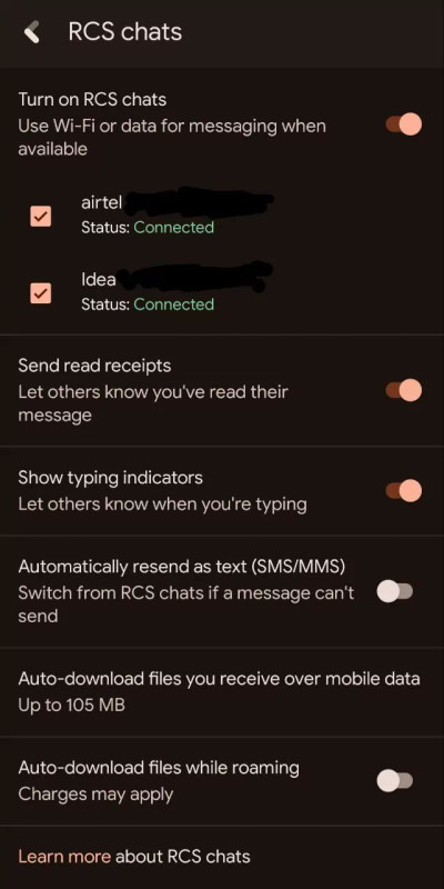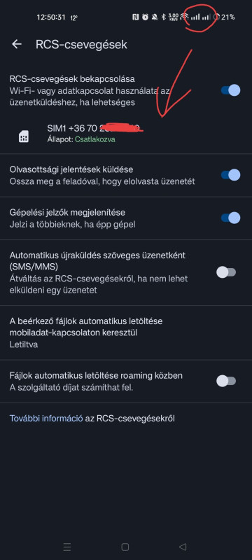 Elvileg mennie kéne az RCS chatnek dual simmel, úgy hogy mind a kettő aktív (csatlakozva) legyen. Voda mellett van Telekomom is, de a messages appban csak a sim1-et mutatja (Vodát), pedig mind a 2 sim aktív (lásd térerő).