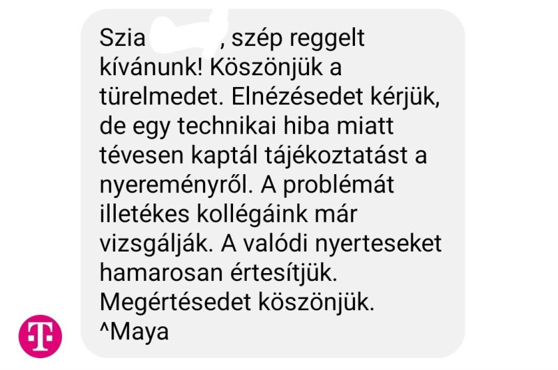 Ma hajnalban jött két értesítés a telekom appban, hogy nyertem, de ha rákattintok, csak hibát dob. Ez valami Bug/scam lenne?