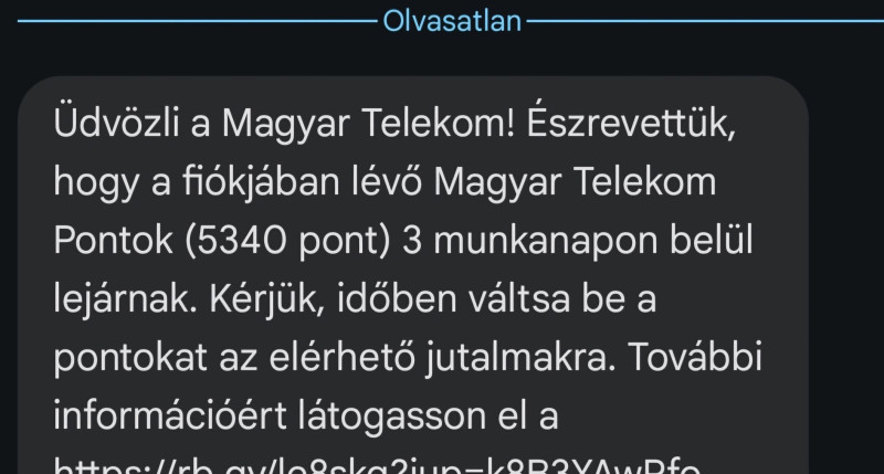Vannak olyanok, hogy Telekom pontok, vagy ez egy átverés? Ma kaptam egy ilyen üzenetet: