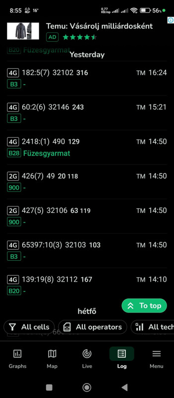 Néhány be nem azonosított cellát látott a telefonom. Hol lehetnek ezek? 4G: 182, 60, 65397, 139. 2G: 426, 427. Cellmapper nem talál ilyen tornyokat, illetve amit igen, az az ország másik felében van, úgyhogy az nem lehet.