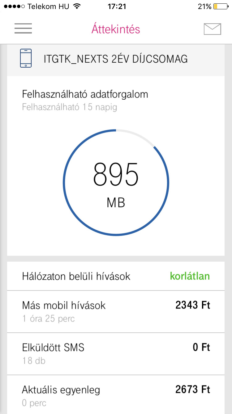 Beállítottam a Telekom mobil appot is, de ott mindegyikre 0-t ír. Ez nekem fura így -