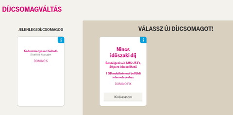 illetve a novemberben vásárolt domino 5 simemnél nem is ajánlja fel a rendszer a díjcsomagváltás lehetőségét