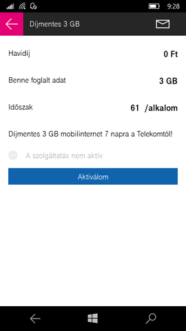 Egy héttel az aktuális promóció meghirdetése után, mai napon megjelent az előfizetésemhez csatolt Dominó kártyán a 3 GB aktiválási lehetősége. Gyorsan rá is nyomtam, mert volt egy megérzésem, hogy ne hezitáljak rajta. Jól is tettem, mert utána hibaüzenettel kidobott az alkalmazás... Viszont sikeres volt az aktiválás, egy-két percen belül jött az SMS.