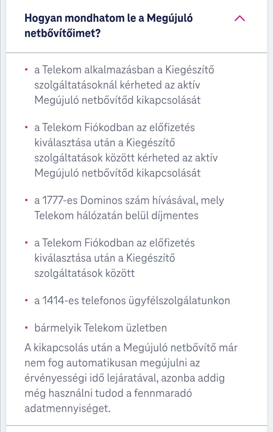 Esetleg még Telekom fiók vagy 1777.Telekomnál a megrendelt szolgáltatás lemondás után is él a lejárat idejéig, de nem újul meg, ha esetleg erre irányult volna a kérdés. Valamelyik szolgáltatónál nem így van.
