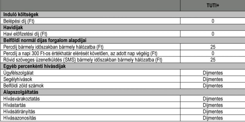 TUTI100+-nak ugyanúgy nincsen havidíja, mint ahogyan a TUTI100-nak sem volt. -
