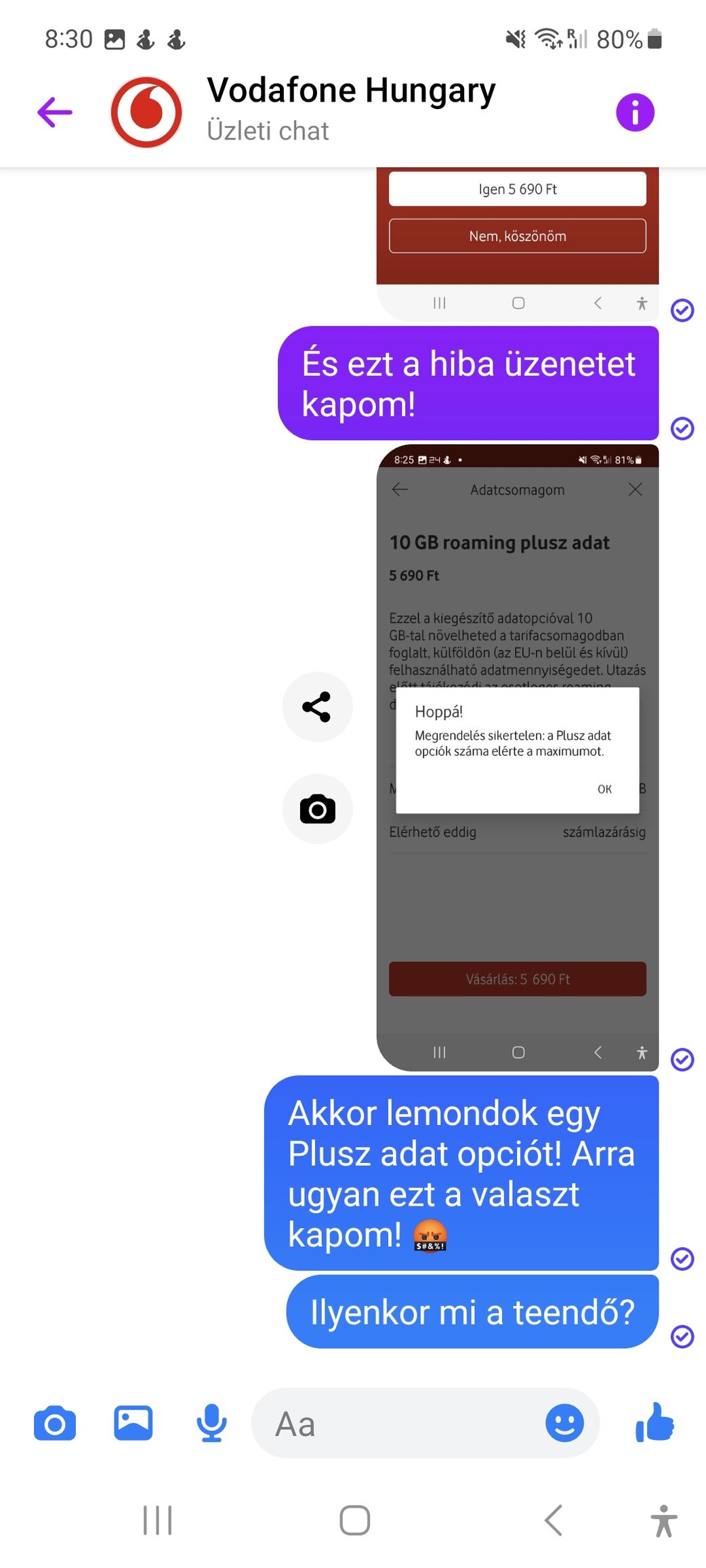 Írt a panaszomra ez a tetves Vodafone.