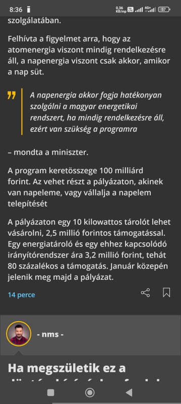 Biztos ki fog menni az a 120 Mrd amit beterveztek rá, lehet, még bővíteni is kell a keretet. Én is simán pályáznék, mert nekem megérné azt a 6-700 e-t, hogy legyen egy tízes tárolóm. Írnak valami elektronikai összetevőkről is, gondolom ami megoldaná a nem hibrid inverterekhez történő kapcsolást. De én nem vagyok szakmabeli sem, és nem is értek hozzá. Lehet hogy addigra cserés is lesz sok régebbi inverter, és a szaldót már nem érinti. Nem tudom, majd meglátjuk hogyan alakul.