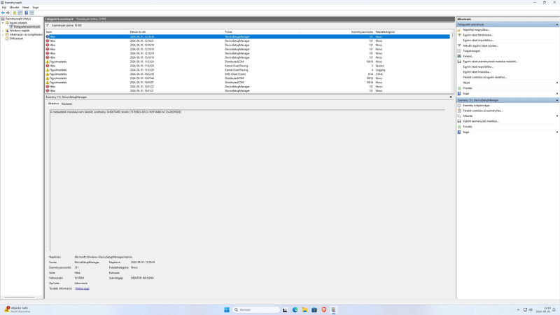 Utána néztem kicsit az eseménynaplónak a gépen, mert éreztem, hogy ez nem tökéletes