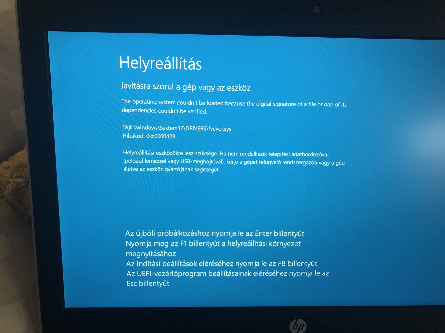 Utána bekapcsolásnál kiírta, hogy a Windows nem tudott betöltődni, javítás stb.