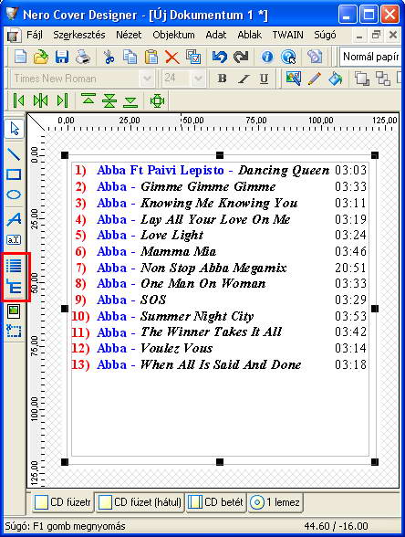 Ha adatlemeznek szeretnéd a borítóját elkészíteni, akkor csináld végig az 1-4 pontokat, csak az 5. pontban a KÖNYVTÁR ESZKÖZT VÁLASZD, a többi meg ua. mint korábban.
